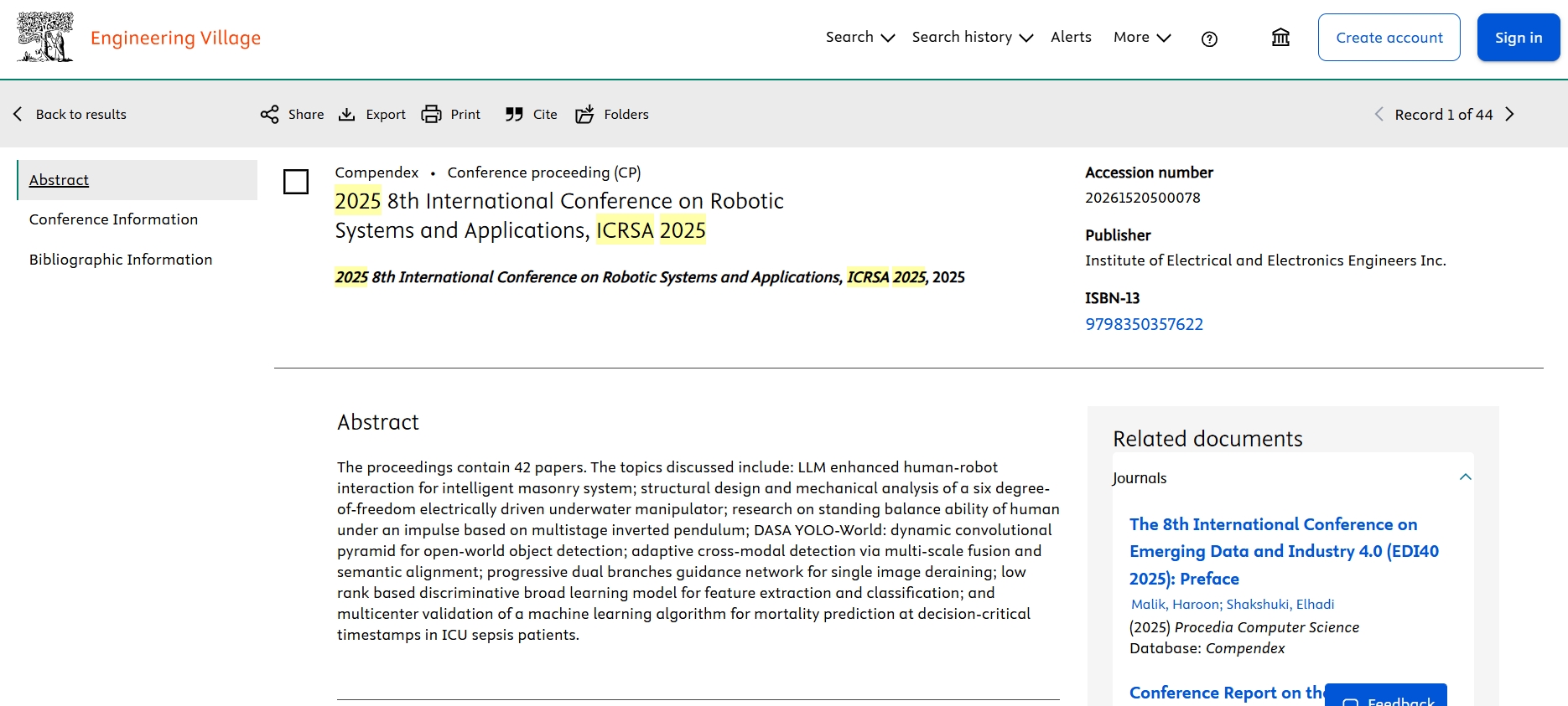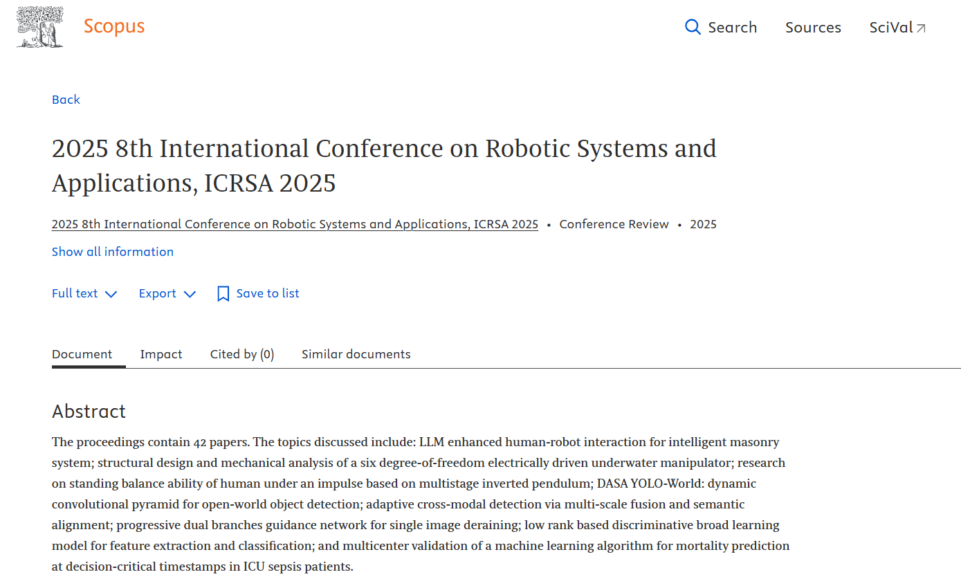 2025 8th International Conference on Robot Systems and Applications (ICRSA 2025)